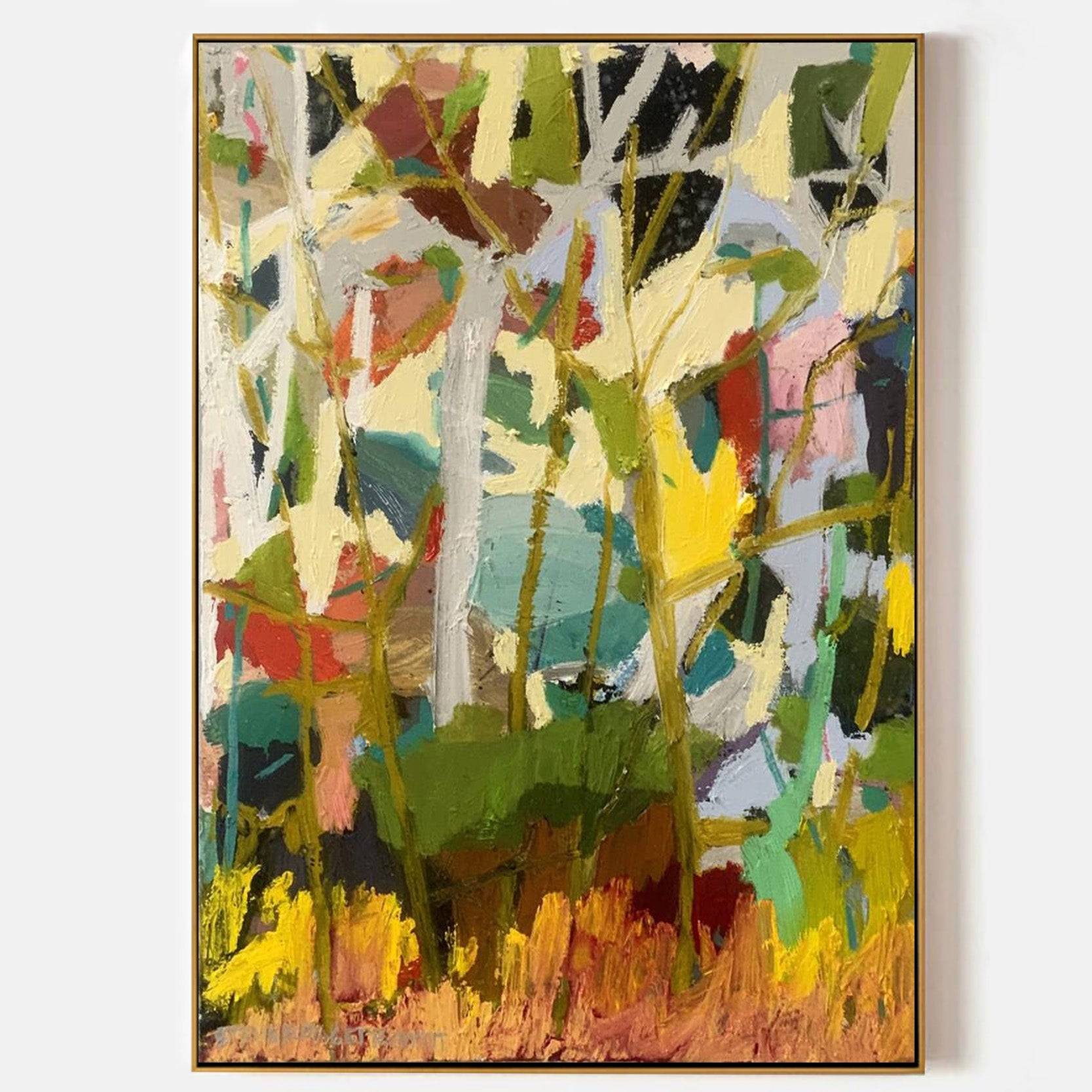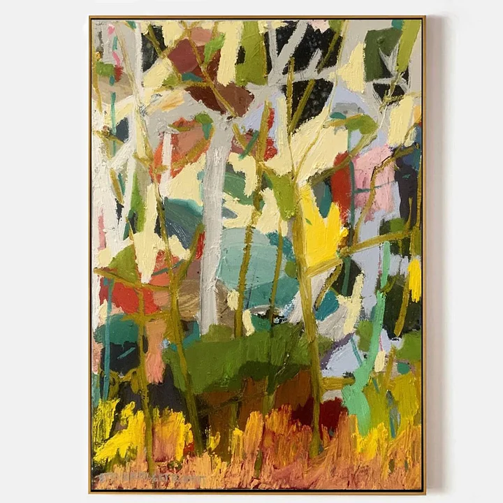 Bring the vibrant energy of nature into your home with Wild Garden, a bold abstract oil painting full of life and movement. Layers of rich greens, warm yellows, and earthy reds create a tapestry that feels both wild and comforting. Perfect for adding warmth, texture, and a touch of untamed beauty to your living space.